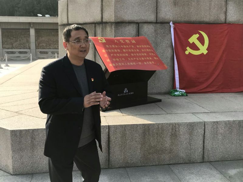 为深入贯彻党的十九大精神,扎实推进“两学一做”学习教育常态化制度化,进一步提高教师党员思想认识水平,11月8日下午,环境科学与工程教职工党支部前往淮海战役园区开展“重温入党誓词,争做合格党员”主题党日活动。我院党委书记李长贵、党委副书记王守刚、副院长周来参加本次活动,活动由党支部书记杨虹主持。
