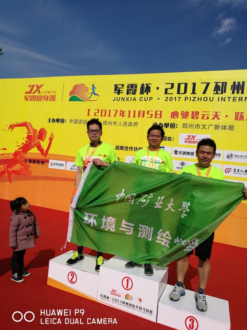 2017年11月5日,由中国田径协会与邳州市人民政府联合主办、邳州市文广新体局承办的2017邳州国际半程马松赛在邳州市桃花岛公园鸣枪开跑。我院工会主席刘汉湖、熊集兵副教授和李龙老师参加本次邳州赛事。