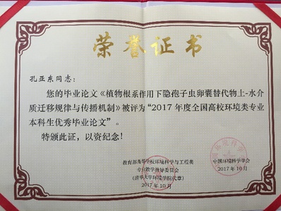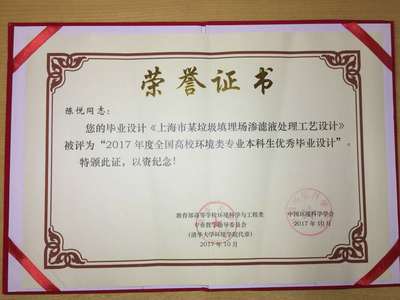 “全国高校环境类专业本科生优秀毕业设计(论文)奖”是由教育部高等学校环境科学与工程类专业教学指导委员会、中国环境科学学会主办,本次评选共有浙江大学、哈尔滨工业大学、中国矿业大学、北京航空航天大学等高校121篇作品参评,经专家组初审、复审和终评,最终评出36篇“2017年度全国高校环境类专业本科生优秀毕业设计(论文)”作品,其中优秀毕业设计12篇,优秀毕业论文24篇。此次评选其主要面向全国环境科学与工程类专业的本科毕业生征集作品,包括环境科学与工程、环境工程、环境科学、环境生态工程、环保设备工程、资源环境科学、水质科学与技术等专业。目的是为不断提高环境科学与工程类专业本科生培养质量,提高学生理论与实际相结合和解决复杂环境问题的能力,为我国环境保护事业输送更多高质量人才。