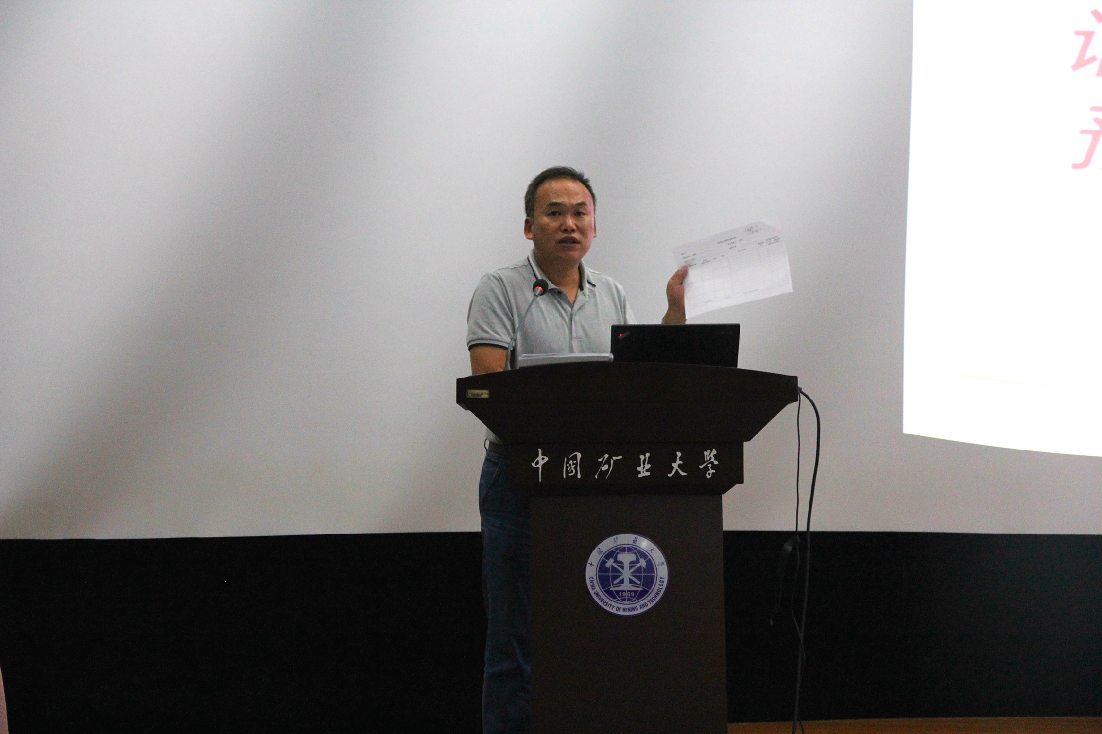 9月27日下午,我院在环B109召开全体教职工大会。大会由李长贵书记主持。 会上,张绍良院长重点解读了2017年学院重点工作推进情况,2017年年初,学院从本科教学与教风学风建设、一流学科建设、师资队伍建设、科学研究、党风作风建设和后勤保障工作等6个方面列出了47项重点工作,并提出完成时限,由学院党政办公室,每次院党政联席会议通报完成情况,全院大会上向全体教职工通报推进情况。张院长指出,在落实学院各项重点工作过程中,我院全体教职工齐心协力,有效地促进了各项工作的按期推进,取得了优异的成绩。上半年,我院共获国家自然科学基金资助项目8项(其中重点项目1项、面上项目5项、青年科学基金项目2项)、环境工程专业获批学校“十三五”品牌专业建设项目、高井祥教授获批国家“万人计划”教学名师、汪云甲教授牵头申报的“标杆管理与产出导向下世界一流矿业特色测绘专业建设与实践”获江苏省教学成果二等奖等。 在总结学院上半年工作后,张院长对标学院“十三五”建设目标,对本学期教学工作、学科建设、平台建设、学术交流、学院管理等工作进行了部署,强调要全面加强内涵建设,迎接本科生教学审核评估、做好新引进教师培训,全面落实学科建设,积极探索和创新青年拔尖人才的培养和高层次人才引进工作。会上,张院长还通报了学院2017年招生就业以及本科生转专业情况。 李长贵书记对上半年党建工作做了详细汇报,并传达了教育部党组《关于中管高校党员干部教师违反中央八项规定精神问题典型案例的通报》等两个文件。李书记指出,学院在党的建设和思想政治工作方面,将着力加强领导班子和干部队伍建设、加强干部作风和党风廉政建设,加强全体党员廉洁纪律教育,做好师德师风教育工作。对下半学年加强党的建设和思想政治工作提出要求,要求各系(支部)落实好“每周三学习研讨制度”,希望全体教职工统一思想、凝聚共识,坚持从严从实、持续推进作风建设,认真抓好思想政治工作,维护好校园安全稳定,迎接十九大的胜利召开。 邓喀中教授就申报国家自然科学基金向全体教职工做了专题报告,他从选题、摘要、立项依据、研究意义、国内外现状分析等方面阐述撰写基金申请书的一些注意事项。 郭东副院长就安全工作进行布置,传达了学校安全工作的精神,指出学院实验室等重点部位存在的安全问题,并要求限时整改,全体教职工共同努力提高安全意识,杜绝身边隐患,维护校园稳定。 通过本次全体教职工大会,学院全体教职工进一步统一思想、凝心聚力,明确了创建国际一流学院的发展目标。