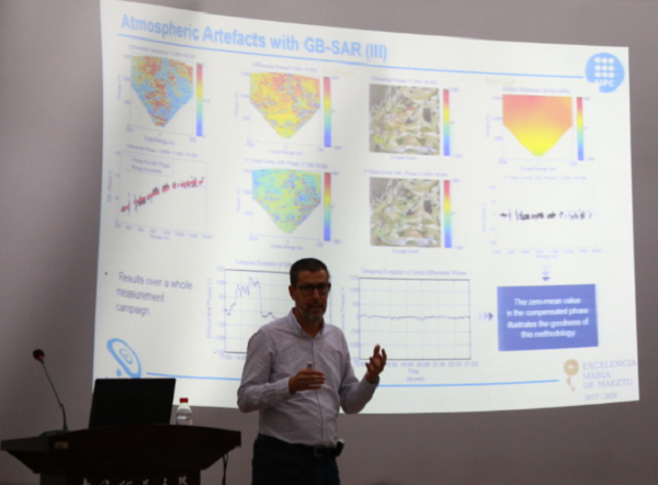 第一讲,Jordi教授从4个方面详细介绍了差分干涉雷达技术的发展和应用。首先他总结了微波成像技术在过去30年的发展情况,从天线成像技术到微波层析成像到现在的合成孔径雷达成像。然后讲述了自己在雷达系统方面做的工作,具体介绍了加泰罗尼亚理工大学研发的地基SAR系统(RISKSAR)、无人机SAR系统(ARBERS)、双基地合成孔径雷达系统(SABRINA)。之后,Jordi教授对从原始SAR数据的聚焦、InSAR干涉图的生成、利用DInSAR监测滑坡和沉降、利用1-D雷达高精度的监测形变等方面作了详尽的讲解。最后,Jordi教授对微波遥感的学习与研究提出了自己建议。 第二讲,Jordi教授从3个方面详细介绍了干涉雷达技术的原理和应用。首先讲述了主动微波成像的一些基本概念;然后着重讲授干涉雷达测量技术的基本原理和数据处理方法,并对每个处理步骤得到的结果进行了展示和分析;最后对影响干涉雷达测量技术精度的因素进行了探讨。 第三讲,Jordi教授详细讲授了差分干涉雷达技术的原理。首先讲述了DInSAR技术的应用领域和优势;然后着重讲授差分干涉雷达测量技术的基本原理和数据处理方法,并分析了误差影响因素,如时间基线、空间基线、大气、电离层等;最后对时序DInSAR技术的原理进行了详细的讲解,并展示了典型区域的监测结果。 Jordi J. Mallorqui 教授长期从事基于航天、航空、地基数据的雷达干涉测量地表形变监测方法;SAR影像分类方法;SAR系统的三维电磁仿真;面向地表形变及滑坡监测的小型无人机SAR干涉系统的设计与开发等方面的研究工作,教学及科研经验丰富。此次授课拓展了我院师生在微波遥感、DInSAR形变监测等领域的视野,同时,也加强了我院在教学、科研等方面与国外高校的联系,促进了我院江苏省品牌专业、江苏省优势学科、测绘工程卓越工程师等项目的国际化建设与交流,取得了良好的效果。 |