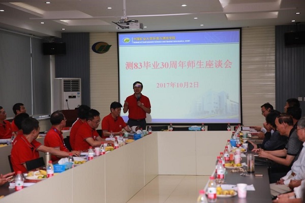 10月2日下午,测83级同学毕业30周年师生座谈会在环测楼A512会议室举行。院党委书记李长贵,执行院长张绍良,原采矿工程系党总支书记张国良,原院党委书记邱慎耕,国土环境与灾害监测国家测绘地理信息局重点实验室主任、院教授委员会主任汪云甲,测83级辅导员、现任中华儿女联合会副主席兼工商业联合会会长刘叶杰,院党委副书记王守刚,副院长郭东,测83级任课教师王雨辰、张华海、邓喀中出席了座谈会,24名测83级校友参加了座谈会,座谈会由原测83级同学、学院测绘与地理信息系主任张书毕主持。 李长贵书记对校友们的到来表示热烈欢迎,为校友们送上殷切的希望和诚挚的祝福,同时还指出,学院面临着“双一流”建设的历史机遇,希望广大校友积极建言献策,以各种方式支持学院发展。 张绍良院长从学院概况、师资队伍、人才培养、学科建设、科学研究等方面介绍了学院发展概况,并希望校友一如既往地关注和支持母校,关注学院的事业发展,为学院的发展贡献智慧和力量,同时希望大家与学院保持联系,常回家看看。 座谈会上,校友们回忆了自身在矿大求学的峥嵘岁月,介绍了自己数年来的拼搏历程,分享了30年间的感悟。老师们回忆了当年给校友们授课的美好时光,并勉励校友们在今后的工作中要立足岗位、不辍奋斗、再创人生辉煌。
