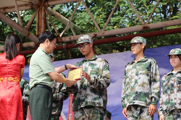 9月23日上午,中国矿业大学2017级新生总结表彰大会在南湖校区东坡运动场隆重举行。中国矿业大学党委书记刘波、党委副书记曹德欣、副校长赵建岭以及学校各级领导参加了此次表彰大会,我院党委书记李长贵、党委副书记王守刚等各学院领导与辅导员师也参加了此次活动并陪同新生完成阅兵仪式。在此次表彰大会中,我院以军训中的优秀表现获得包括“军训先进单位”在内的多项表彰。 9点整,伴随着国歌雄壮激昂的旋律,军训总结大会拉开了序幕。在分列式表演中,十五营我院方阵以挺拔的军姿、嘹亮的口号迈着整齐的步伐,气势锐不可当地通过主席台,接受主席台领导的检阅。一阵阵刚劲有力的“正步走”、“向右看”“一二一“和铿锵有力的脚砸地声中展现出环测女生的壮志豪情和男儿的铁血豪情。紧接着由我院等各个学院数百名军训学员组成的队伍进行军事技能汇报表演,军体拳、坦克兵体操、棍术、捕俘拳及捕俘刀等一系列表演赢得了现场观众的阵阵掌声。 分列式检阅结束后,现场宣读2017级军训先进单位及先进个人的表彰决定,现场领导为获奖团体颁奖。其中我院荣获2017级新生军训先进单位、17级辅导员李月获得“优秀指导员老师”的称号、17级测绘6班、测绘8班和环境5班荣获优秀班级体、46人被评为军训先进个人。 随后,中国矿业大学党委副书记曹德欣代表学校向积极参加训练并取得可喜成绩的同学们表示热烈的祝贺和亲切的慰问,向在本次军训中付出辛勤劳动的中国人民解放军承训部队首长和全体教官表示崇高的敬意和衷心的感谢。他提到,“一朝为军人,终身筑军魂“,在半个月的军训中,学校2017级新生圆满地完成了各项军训任务,实现了艰苦磨练后的蜕变,展示出了青春与自信,增强纪律观念,提高自我管理能力,并取得了丰硕的成果。 我院在军事训练总结大会上一项项骄人的成绩和卓越的表现向全校师生展示了环测学子积极向上的精神风貌,在训练过程中磨练了同学们的意志,加强了团结精神,为他们在接下来四年的大学生活中打下了坚定的基石。 (通讯员:高程) |