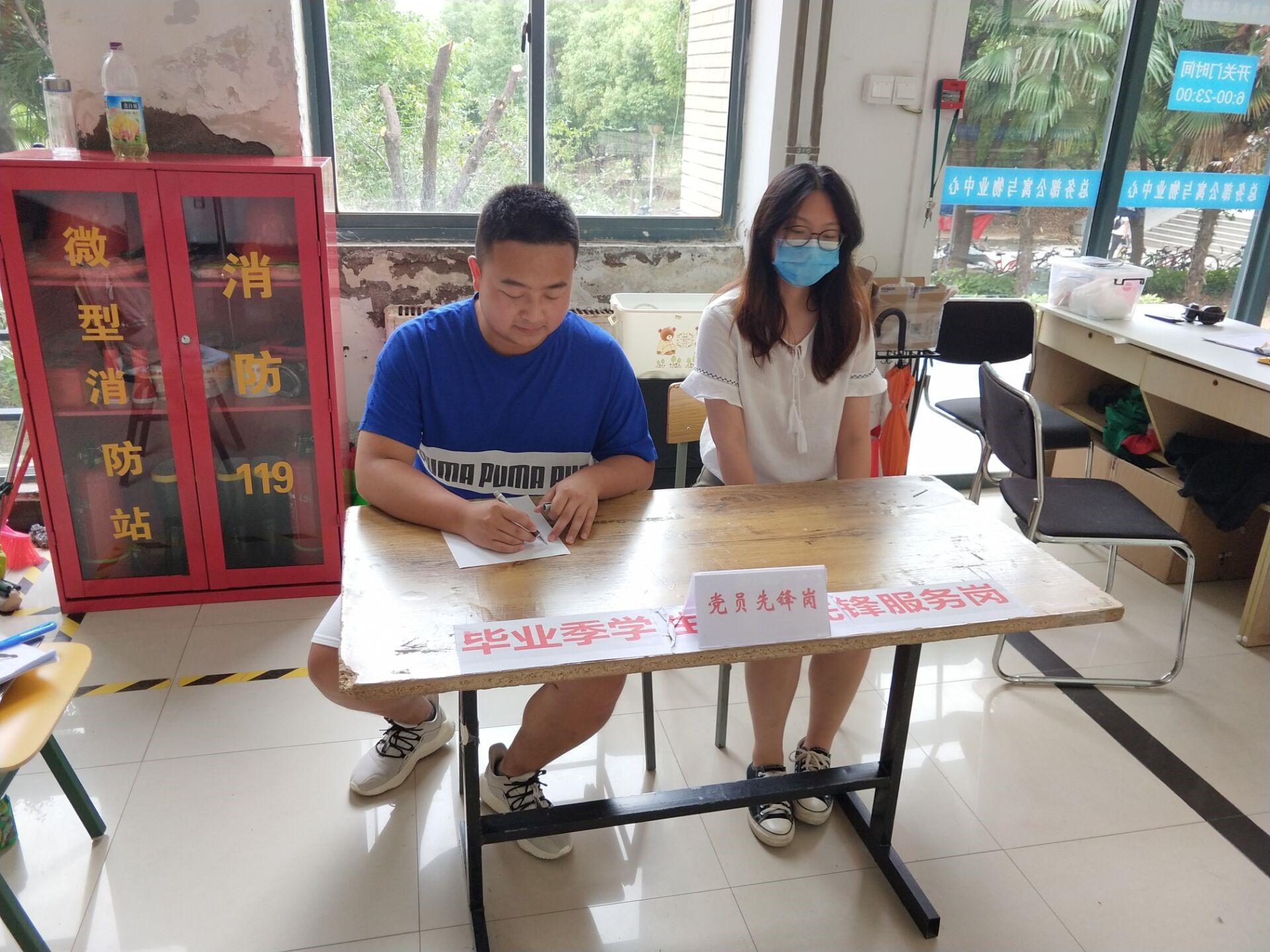 为切实做好2020届毕业生文明离校工作,营造文明、和谐的校园氛围,我院党委于6月17日至27日在桃苑5号宿舍楼一楼大厅设立党员先锋服务岗,组织学生党员为毕业生离校提供志愿服务。