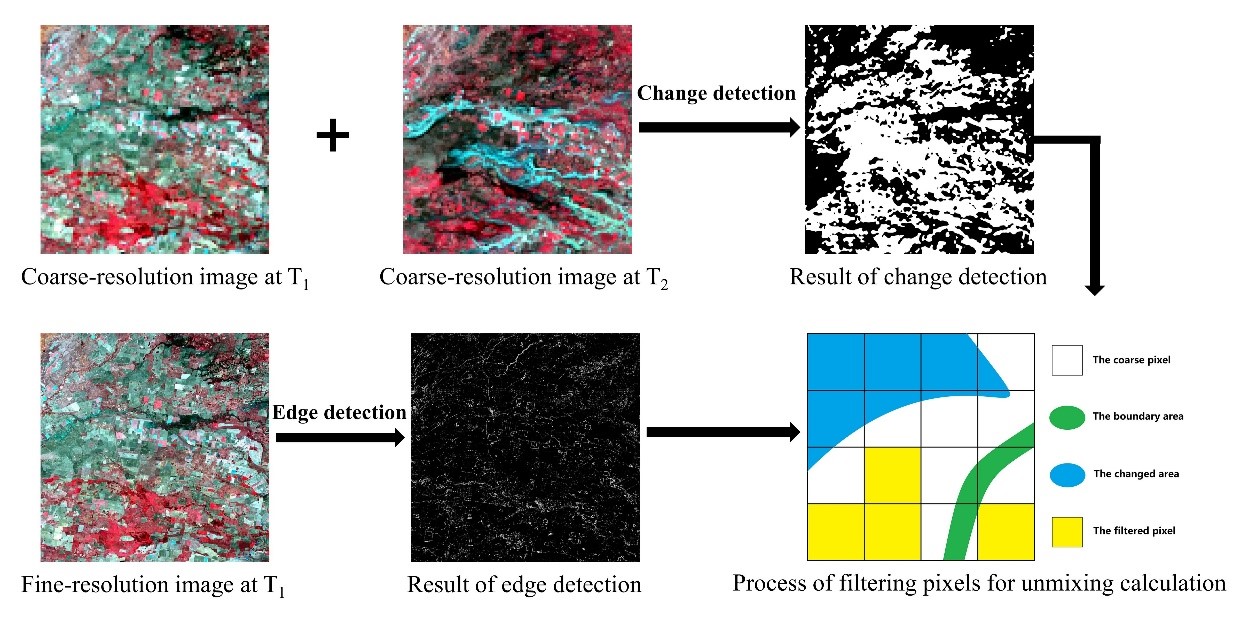 论文提出了一种结合变化检测技术与变化像元优化模型的改进灵活时空数据融合算法(FSDAF 2.0),该方法在灵活时空数据融合方法(FSDAF)的基础上,利用变化检测技术提取变化信息,再结合边缘检测技术改进光谱线性解混,最后计算相似性指数,均质性指数和一致性指数建立优化模型对变化像元进行优化,实现遥感影像的时空融合,与其他传统算法相比,FSDAF 2.0在复原类别变化信息和捕捉地表细节的能力上有显著提升,在监测地球表面复杂的动态变化方面具有巨大的潜力。