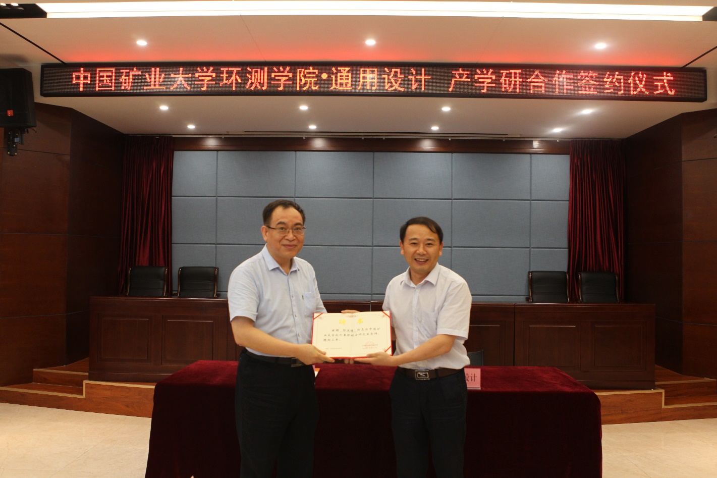 郑南山教授代表学校向郭宝德发放校外兼职硕士导师聘用证书,并代表我院与通用技术集团工程设计有限公司刘树才在合作协议上签字。
