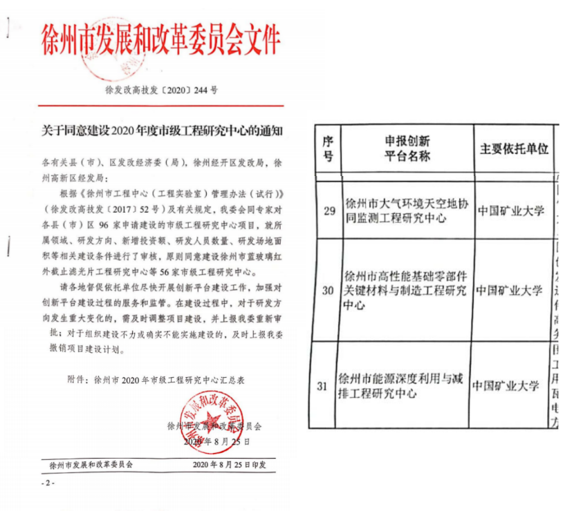 近日,徐州市发展和改革委员会下发了关于同意建设2020年度市级工程研究中心的通知,我院能源与环境遥感大数据中心(IERSD)申报的“徐州市大气环境天空地协同监测市级工程研究中心”项目获得批准。