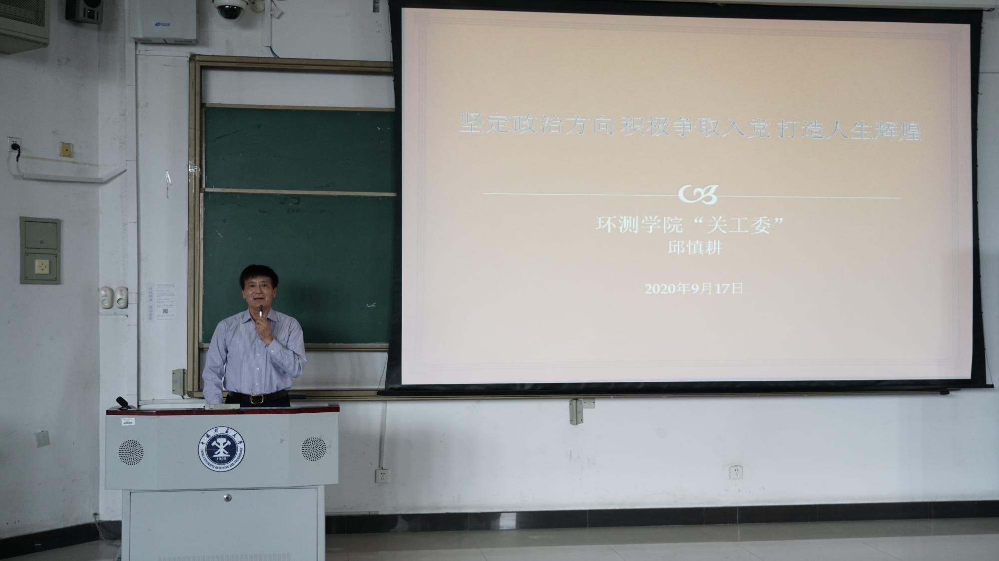 9月17日下午2时,我院在博2C302教室举行入党启蒙教育讲座。讲座由我院关工委常务副主任、校特邀党建组织员邱慎耕老师主讲,20级辅导员张莹老师主持,20级我院全体同学参加本次讲座。