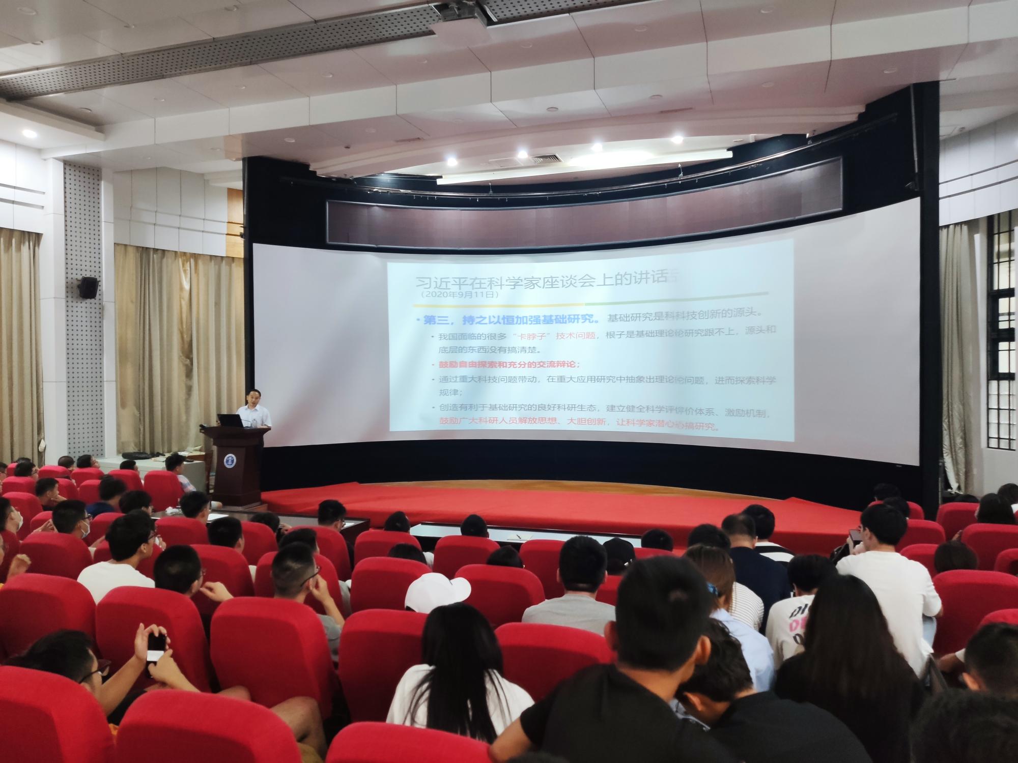 郑南山教授为新同学介绍了学院的学科建设、学术科研成果和平台实验室资源以及研究生的学习与科研方法。系统阐述了本科知识与研究生知识的本质差异、学习策略的重构、思维方式的蜕变等问题。王潜心教授为新生介绍了研究生培养、学籍、学位、奖助、安全及当前注意事项6个方面介绍了整个学制内研究生应遵循的规章制度,特别是坚持正确的思想引领以及学术不端、安全管理等。陆雨老师在研究生培养管理的师资队伍、常态化疫情防控下的管理、学生生活中的安全问题等方面为新生进行了讲解。希望同学们积极学习《研究生手册》,认真开展学术研究、愉快生活、学业有成。