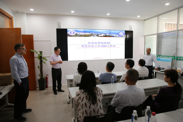 9月15日上午,省委统战部八处处长倪南,驻省委统战部纪检监察组二处处长欧坚,省委统战部八处二级调研员徐莉,无锡市委统战部侨务综合处处长毕杰,苏州市委统战部侨务综合处四级主任科员李希,南通市委统战部侨务综合处处长王叶强,连云港市委统战部侨正处处长魏华兴,盐城市委统战部侨务工作处处长朱悦,泰州市委统战部港澳台工作处副处长任小俊一行9人来我院进行考察。徐州市委统战部副部长、侨办主任朱绍锋,侨政文教事务处副处长陈广华陪同考察调研。