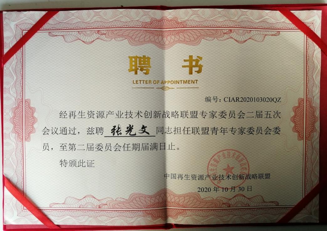 10月30日-11月1日,中国再生资源产业技术创新战略联盟 “2020固废资源化利用行业创新驱动高质量发展峰会”在广西壮族自治区北海市成功召开。我院教师张光文参加会议并由“联盟二届五次理事会暨专家委员会会议”审议通过增选为“联盟青年专家委员会委员”。