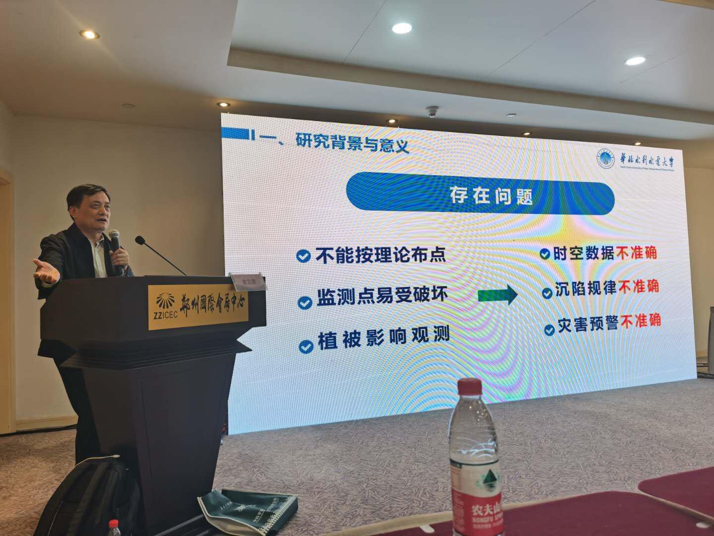 华北水利水电大学校长、教育部测绘工程专业教指委副主任委员、河南省测绘与地理信息学会副会长刘文锴教授作《采煤沉陷天空地多源数据融合监测与灾害预警关键技术及应用》报告,介绍了项目的研究背景与意义,指出了现有采煤沉陷观测存在的问题;研究了利用天空地多源数据融合监测采煤沉陷情况的方法与技术;归纳了不同地质条件和采煤方法下上覆岩层与地表变形的规律,提出了产生灾害的预警关键技术;总结了创新点及成果先进性,介绍了成果实际应用效果及效益。