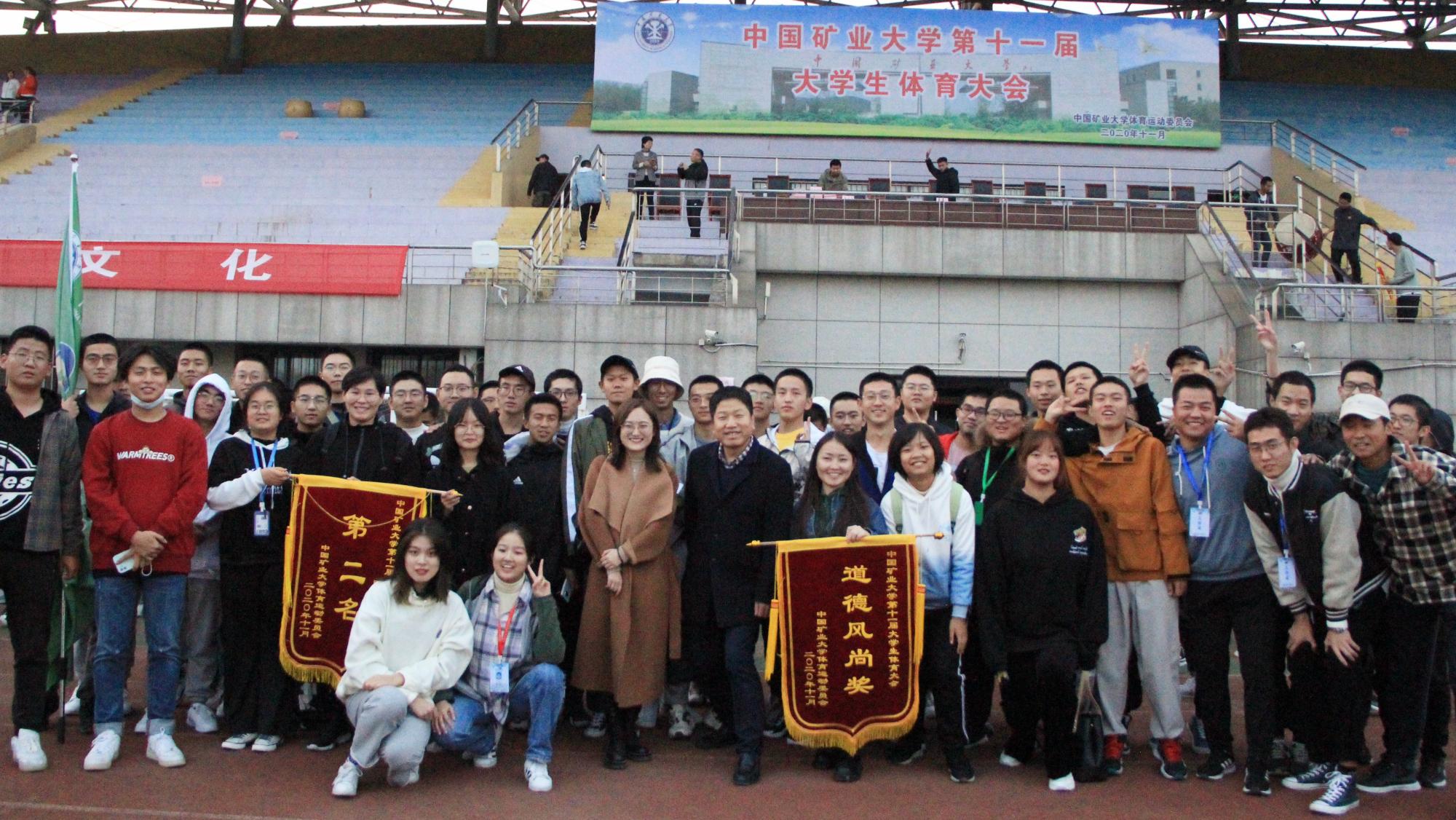 为积极开展学生阳光体育运动,促进大学生体育文化蓬勃开展,提高大学生体质健康水平,11月15日,我院学子积极参加由中国矿业大学校体委举办的第十一届大学生体育大会并获得多项荣誉。其中,我院取得团体总分第二名、体育道德风尚奖、广播体操一等奖的好成绩。