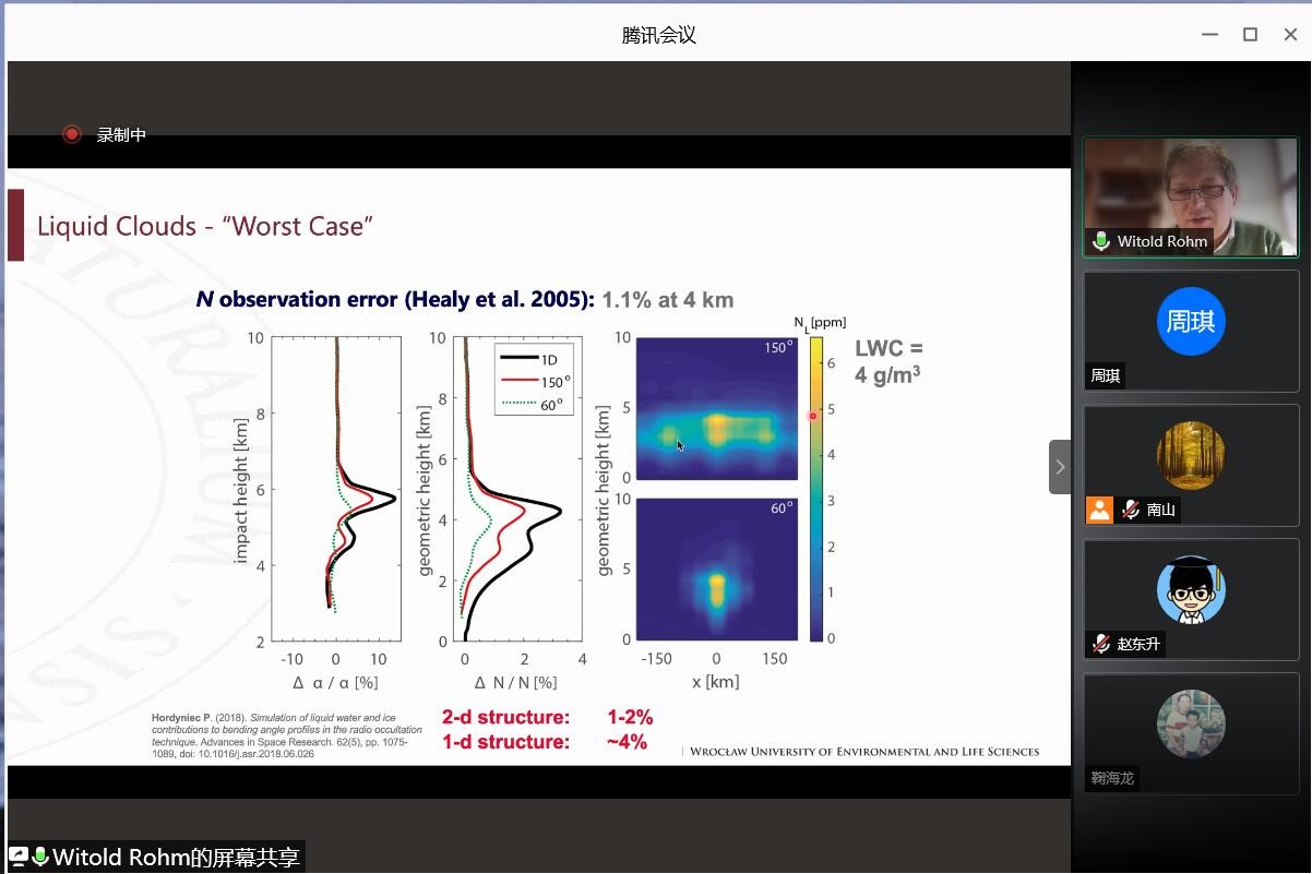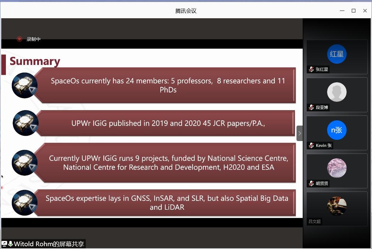 11月25日下午,波兰弗罗茨瓦夫环境与生命科学大学的Witold Rohm教授通过“腾讯会议”平台为我院师生作了题为“Leading Research Group SpaceOs at UPWr: use of GNSS, SLR, InSAR in Earth Science”的线上学术报告,报告由张克非教授主持,我院郑南山院长、王潜心副院长、测绘专业相关教师和研究生参与了报告会。