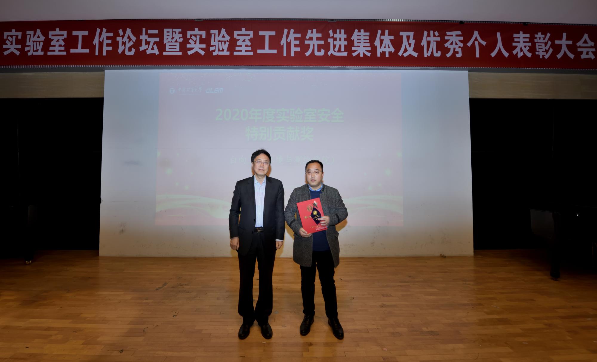在2020年度实验室工作绩效考核中,我院获“实验室安全工作先进集体”称号(全校1个),郭东获“支持实验室工作好领导”称号(全校4人),马昌忠获“优秀实验中心主任”称号(全校3人),白向玉获“实验室安全工作特别贡献奖”(全校1人),蔡先娈获“优秀实验中心秘书”称号(全校6人),雷灵琰获“优秀实验室安全员”称号。