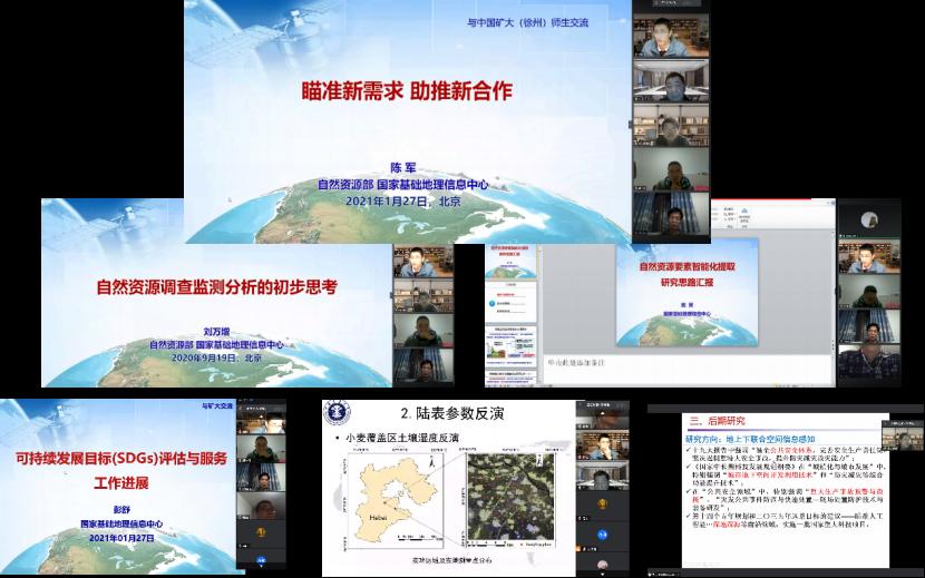 2021年1月27日,自然资源部国家基础地理信息中心陈军院士团队和我院师生举行线上学术交流研讨会。本次会议是在疫情防控特殊背景下,适应国家发展新格局、服务国家发展新需求和自然资源部职能转变的新要求,两单位之间围绕战略目标任务,进一步推进落实深入合作的一次重要学术交流会议。自然资源部国家基础地理信息中心陈军院士、刘万增处长、武昊高工、彭舒高工等团队主要成员,我院国家“万人计划”教学名师高井祥教授、执行院长郑南山教授及青年教师李增科、郝明、郎丰铠副教授和博士研究生代表20多位与会交流。研讨会由郑南山院长主持。