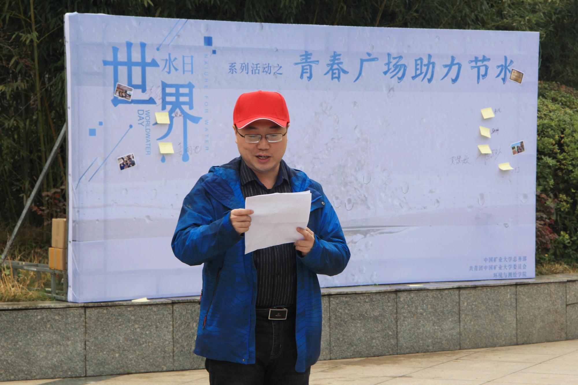 总务部能源管理中心主任林保江代表总务部第五党支部、能源管理中心,向徐州市水务局、校团委、管理学院等单位对本次活动的支持表示由衷感谢。同时他指出,为响应国家号召,矿大能源管理中心始终致力于节水节能工作,并积极抓住每一次改造机遇,努力完善节水节能实践,奉献着矿大人的智慧与力量。