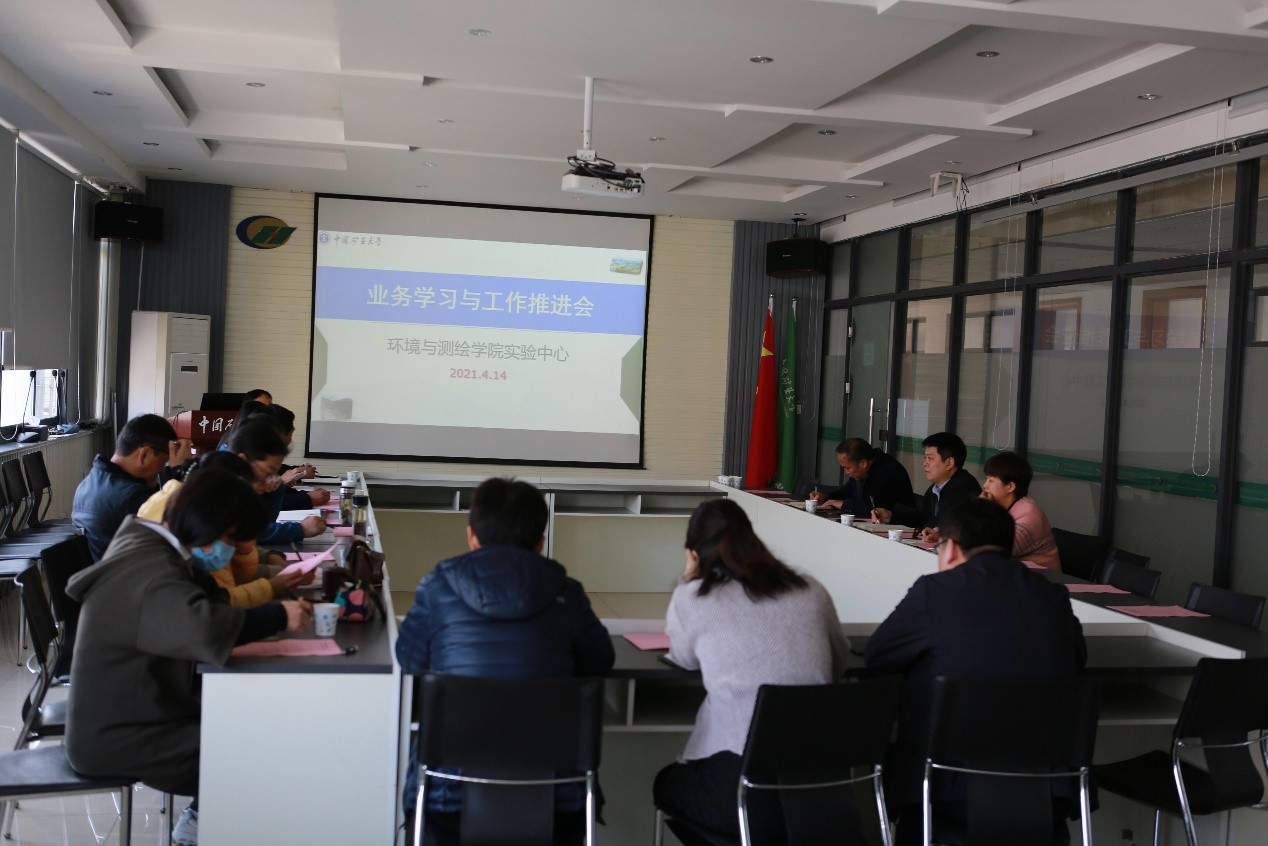 4月14日上午,实验中心在环测楼A512会议室组织了集中业务学习暨2021年度工作进展推进会,对实验中心2021年重点工作进行督导推进以及开展正常的月度集中学习。校实验室与设备管理处处长吴祝武、副处长孙志华、学院行政副院长郭东及实验中心全体人员参加了会议。会议由实验中心主任马昌忠主持。