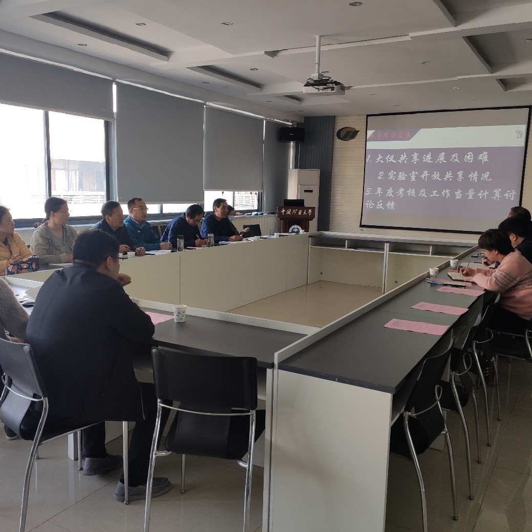 本次实验室工作推进会有三项议程,一是实验中心支部书记杨敏对我院实验中心2021年的工作进展与成效,存在的问题及下一步工作安排做了介绍;二是实验中心马昌忠主任带头对大型仪器共享、实验室开放项目申报、工作当量计算办法解读等进行专题业务学习和交流;三是开展了“光辉的历程”实验中心支部党员党史学习。