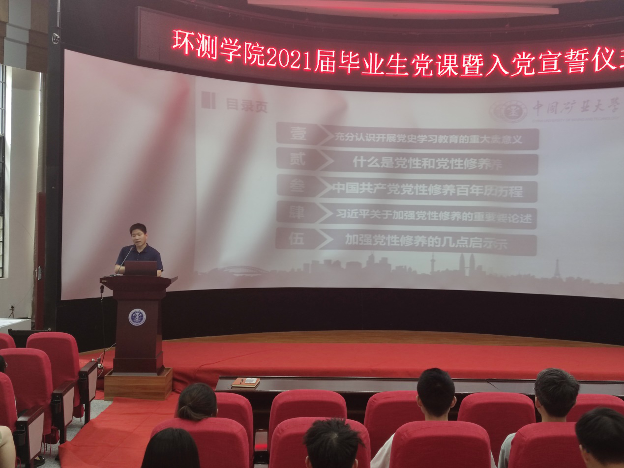 6月9日下午2:30,我院在B109报告厅举行2021届毕业生党课暨入党宣誓仪式,党委书记王守刚作为主讲人给2021届全体毕业生党员以及新发展党员同志上了一堂生动的党课。