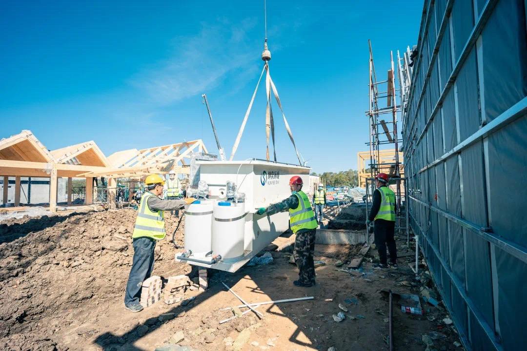 我院参赛队伍由环境科学与工程专业肖昕、刘汉湖、王晓老师带领,协同3名研究生,3名本科生深度参与此次竞赛。团队秉承生态、绿色、可持续理念,负责房屋雨污水处理系统及全屋给排水管网、水处理的设计与施工。室内污水经处理可达到国家中水回用标准,用于室内地暖用水循环补给,景观浇灌,打扫和洗车等;雨水经海绵庭院收集后下渗补给地下水。整体设计将生态处理单元和海绵庭院景观设计相融合,达到了节能、生态、环保的有机统一。项目施工期间,肖昕老师、刘汉湖老师带领研究生梁妍、李俊池、王静贤先后赴浩石集成房屋加工厂、张北县德胜村工地驻场,进行现场给排水管网布设、海绵庭院及中庭人工湿地建造施工等工作。