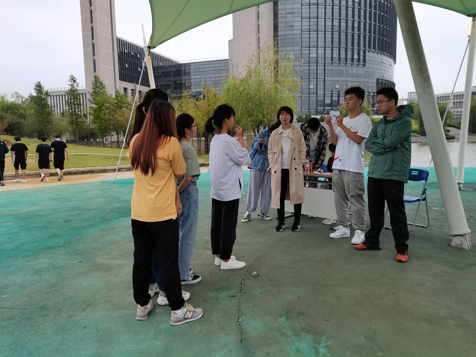 三是积极营造节日氛围,增进师生互动交流。院生活权益部于10月2日至10月4日举办了“国庆和你,相约矿大”校园景点打卡活动,鼓励 21级新生们积极探索了解校园环境,拉近同学们之间的距离。活动期间,参赛团队在校园不同景点寻找事先放置好的五面国旗,并且记录下与国旗的合影,最后将照片配以适当的文案发布在社交平台上进行打卡。10月5日,大学生心理自助中心在南湖校区不显山、测绘广场、校友公园、白棚四个地点分别开展“宝贝计划”活动。活动中的“四人五足”“言行不一”等游戏考验团队队员默契配合程度,拉近彼此的距离。