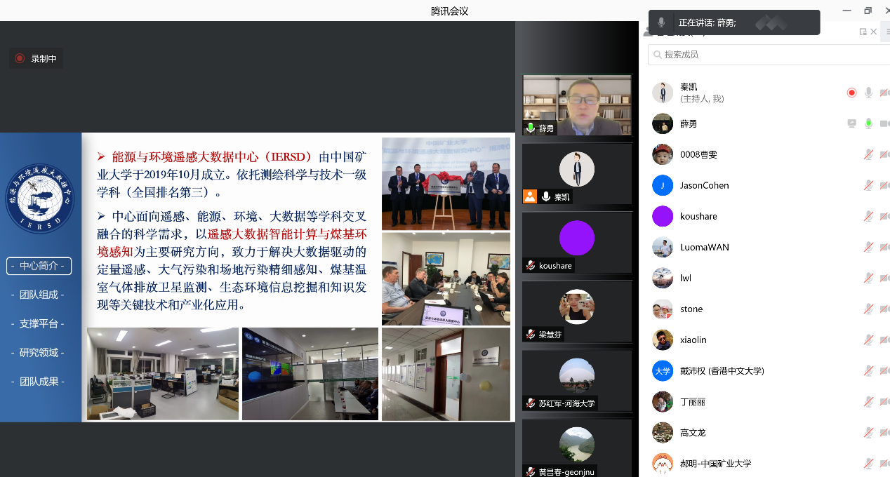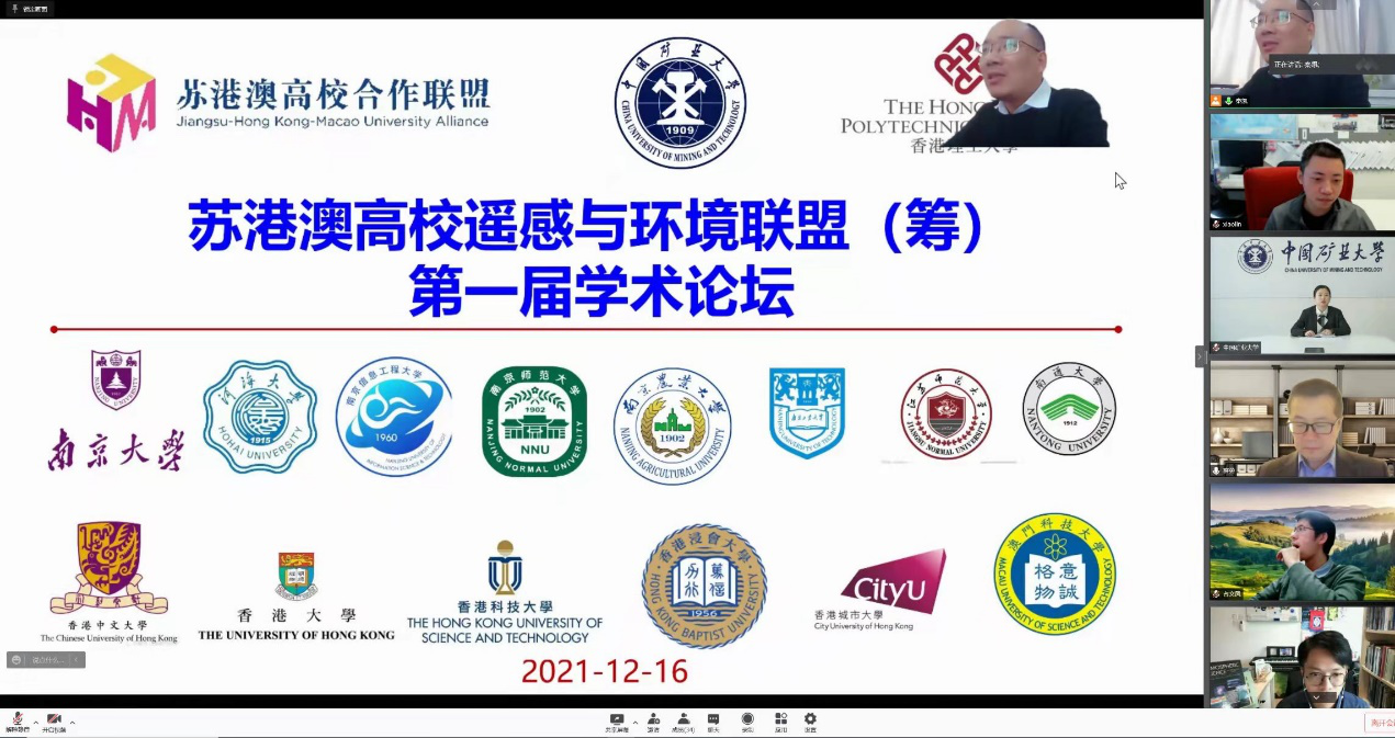 12月16日下午,苏港澳高校遥感与环境联盟(筹)第一届学术论坛召开。本次论坛由苏港澳高校合作联盟主办,我院和国际合作交流处共同承办。论坛采用线上方式进行,并通过寇享学术平台进行同步直播。来自中国矿业大学、南京大学、河海大学、南京信息工程大学、南京农业大学、南京工业大学、江苏师范大学、南通大学、香港理工大学、香港大学、香港中文大学、香港科技大学、香港浸会大学、香港城市大学、澳门科技大学等15所高校的40余名教师参加了论坛,就能源与环境遥感大数据、城市热岛、大气与农业及森林相互作用、高光谱遥感、时序遥感、城市遥感、城市气象、智慧农业等方面,带来了10场精彩报告。论坛由我院秦凯教授、Jason Cohen教授、香港理工大学黄文声教授担任主持人,薛勇院士作了学术报告,累计有1500余人次通过腾讯会议或寇享学术平台参与了论坛。
