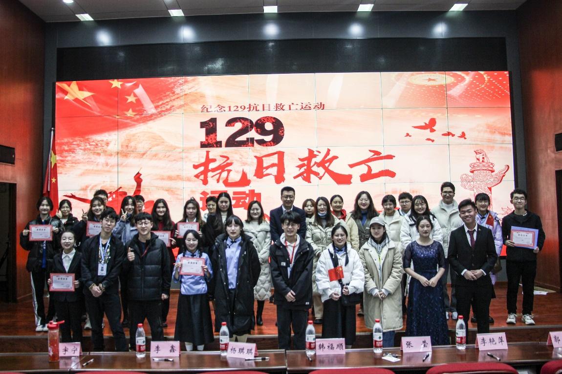 活动开始,各班主讲人通过PPT、视频等方式向大家展示了班级的学风建设与班级管理情况,风采展示结合了与12·9爱国主题相关的朗诵、合唱、舞蹈等一系列表现形式。在节目展示环节中,各班级分别以话剧、朗诵、合唱或说唱等形式进行了展示,令观众眼前一亮。活动最后,韩福顺副书记对参赛班级的节目进行了点评,并提出了建议,他希望同学们在接下来的学习生活中能够更好地表现出青年大学生的爱国情和积极向上的精神风貌。活动最后,评委老师为获奖班级进行了颁奖并合影留念。