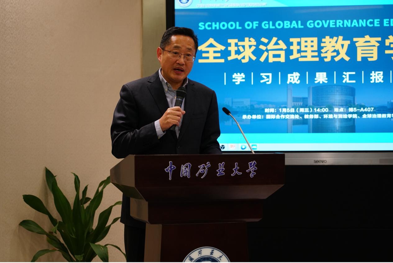 1月5日下午,全球治理教育学院学习成果汇报会于博五教学楼A407会议室举办,副校长曹德欣、国际合作交流处处长张振康、党委宣传部副部长刘尧、学生处副处长兼就业指导中心主任杨昭、我院党委书记王守刚、执行院长郑南山、研究生院副院长范胜军、我校教师代表何士龙、Jason Cohen教授列席会议。会议由院党委副书记韩福顺主持。