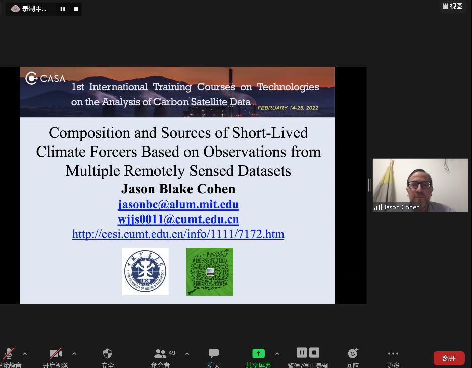 我院Jason Cohen和秦凯两位教师应邀分别以“Satellite composition and sources of short-lived climate forcers based on observations from multiple remotely sensed datasets”和“Atmospheric composition monitoring based on Sentinel-5P/TROPOMI satellite”为议题授课。学员们普遍认为此次培训班内容重点突出、针对性强,并对培训班的课程安排、授课质量、组织保障等方面予以充分肯定,希望能进一步加强彼此间的合作。