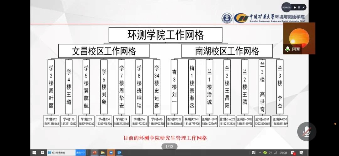会议最后,部分参会同学就网格化管理发表了自己的观点,提出对班级信息汇报进行小组细化管理,以安排网格员的形式提高疫情期间信息汇报效率等建议,这一提议得到了杨政军老师的肯定。