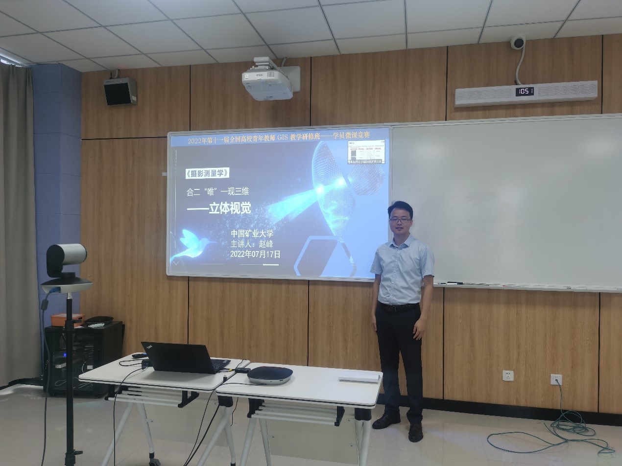 本次青年教师GIS教学研修班和微课比赛由中国地理信息产业协会教育工作委员会、教育部高等学校地理科学类专业教学指导委员会、中国矿业大学等机构和高校主办,由中国矿业大学资源与地球科学学院、36365路检测中心、南京师范大学地理科学学院承办。7月13-16日由本领域国内知名专家学者授课,讲授地理信息科学发展前沿、先进GIS教学理念和方法。17日举办微课比赛决赛,来自北京大学、武汉大学、中国矿业大学等20余所高校的30名青年教师参赛。我院陈宇老师以“植被的反射波谱特性——解码植被的指纹”为主题,获得决赛特等奖,并作为获奖教师代表发言;赵峰老师以“合二唯一现三维——立体视觉”为主题,获得决赛一等奖。