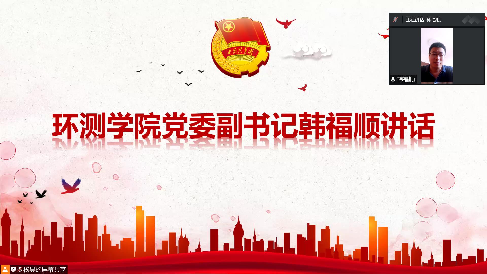 接着,韩福顺副书记根据党和国家的奋斗历程,提醒青年学生应扎根人民群众,做好基层工作,不断成为推动社会发展的中坚力量。青年代表希望,青年创造明天,韩书记强调,在疫情期间,各位同学应做好个人防护,增强防护意识,消除侥幸和懈怠心理,努力在暑期中交出一份优秀的答卷。