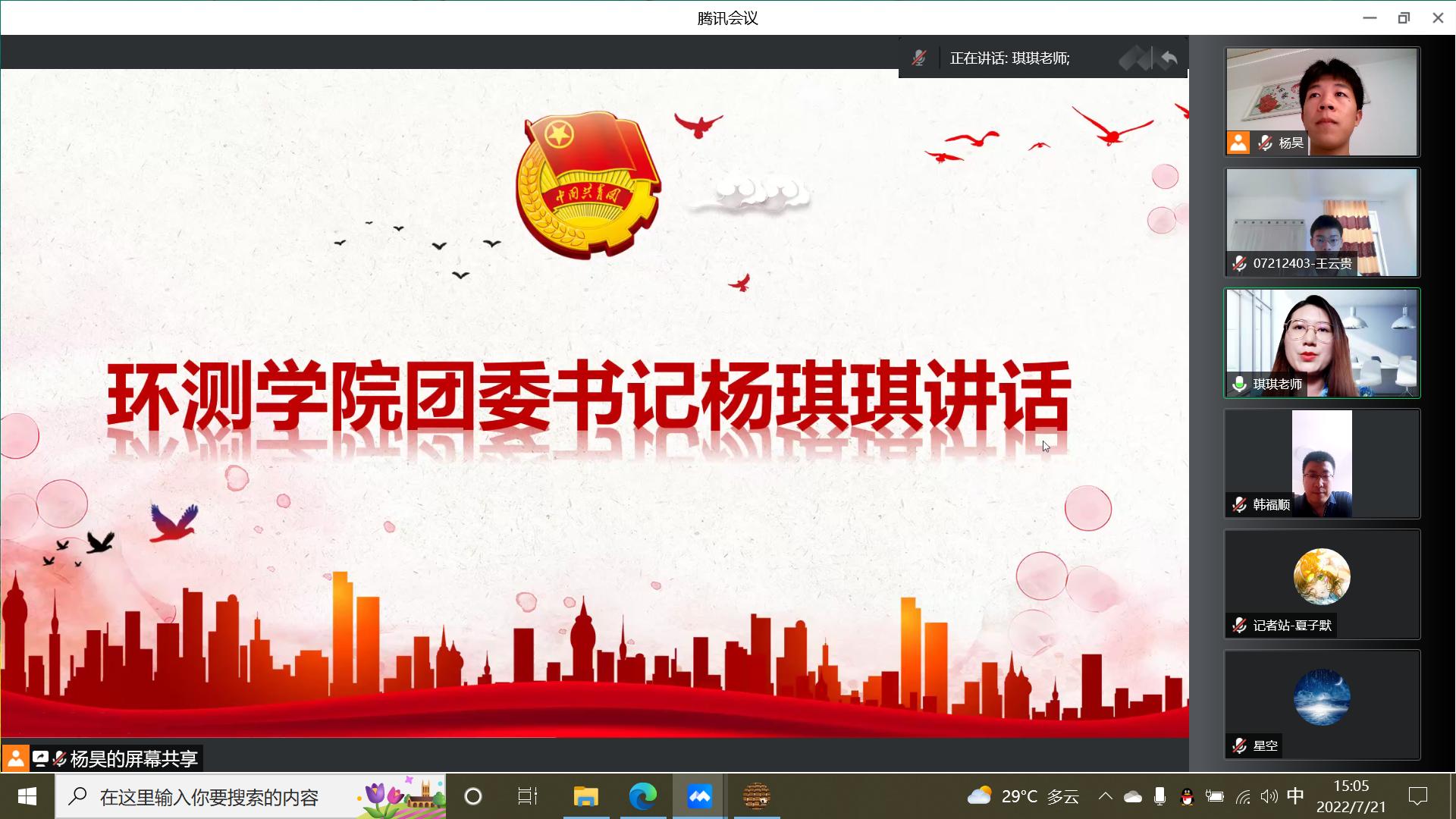 7月21日下午三时,我院2022年暑期社会实践报告培训会在线上召开。学院党委副书记韩福顺、团委书记杨琪琪出席了本次培训会,会议由学生代表杨昊主持。
