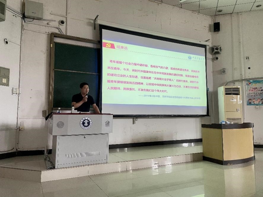 8月26日15时,学院党委书记王守刚、2022级辅导员蔡臻为新生进行了入党启蒙教育。王守刚书记以民族和党的历史为背景,从党的定义、党的历程、党的理想、党的未来四个角度出发,全面解答了“为何加入中国共产党是当代有志青年的必然选择”这一问题。随后,蔡臻老师对入党流程进行了详细阐释,要求新生提高思想觉悟,明确政治立场,鼓励同学们积极向党组织靠拢。