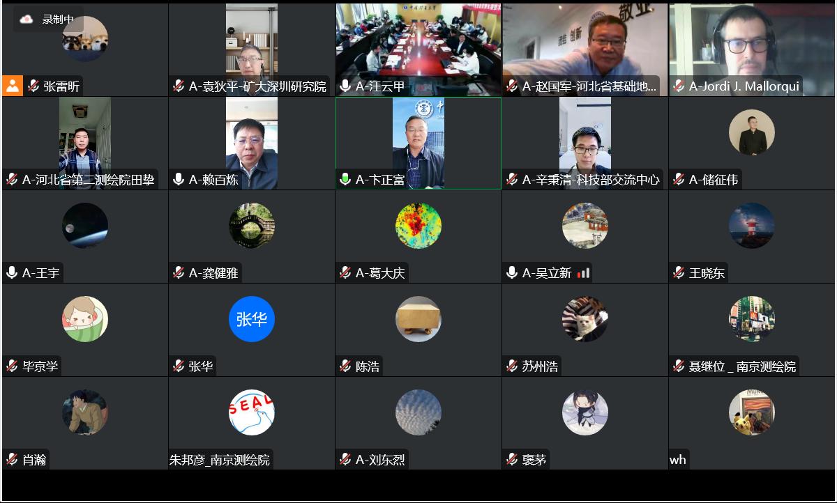 科技部中国科学技术交流中心辛秉清处长、我校副校长卞正富教授,论证专家组成员中国科学院院士、武汉大学龚健雅教授,国际欧亚科学院院士、中南大学教授吴立新,国际欧亚科学院院士、我校薛勇教授,中煤航测遥感集团董事长赖百炼教授级高工,中国科学院空天信息研究院王宇研究员,中国自然资源航空物探遥感中心葛大庆教授级高工,贵州省基础地理信息中心副主任刘东烈研究员,河北省第二测绘院田挚教授级高工,河北省基础地理信息中心主任赵国军研究员,深圳市城市公共安全技术研究院技术总监袁狄平研究员,我校我院执行院长郑南山教授,合作单位代表加泰罗尼亚理工大学教授Jordi J. Mallorqui、南京市测绘勘察研究院股份有限公司董事长储征伟教授级高工等出席会议。项目参加单位相关研究、管理人员及研究生共80余人参加会议。会议由我校科研院冉进财院长主持。