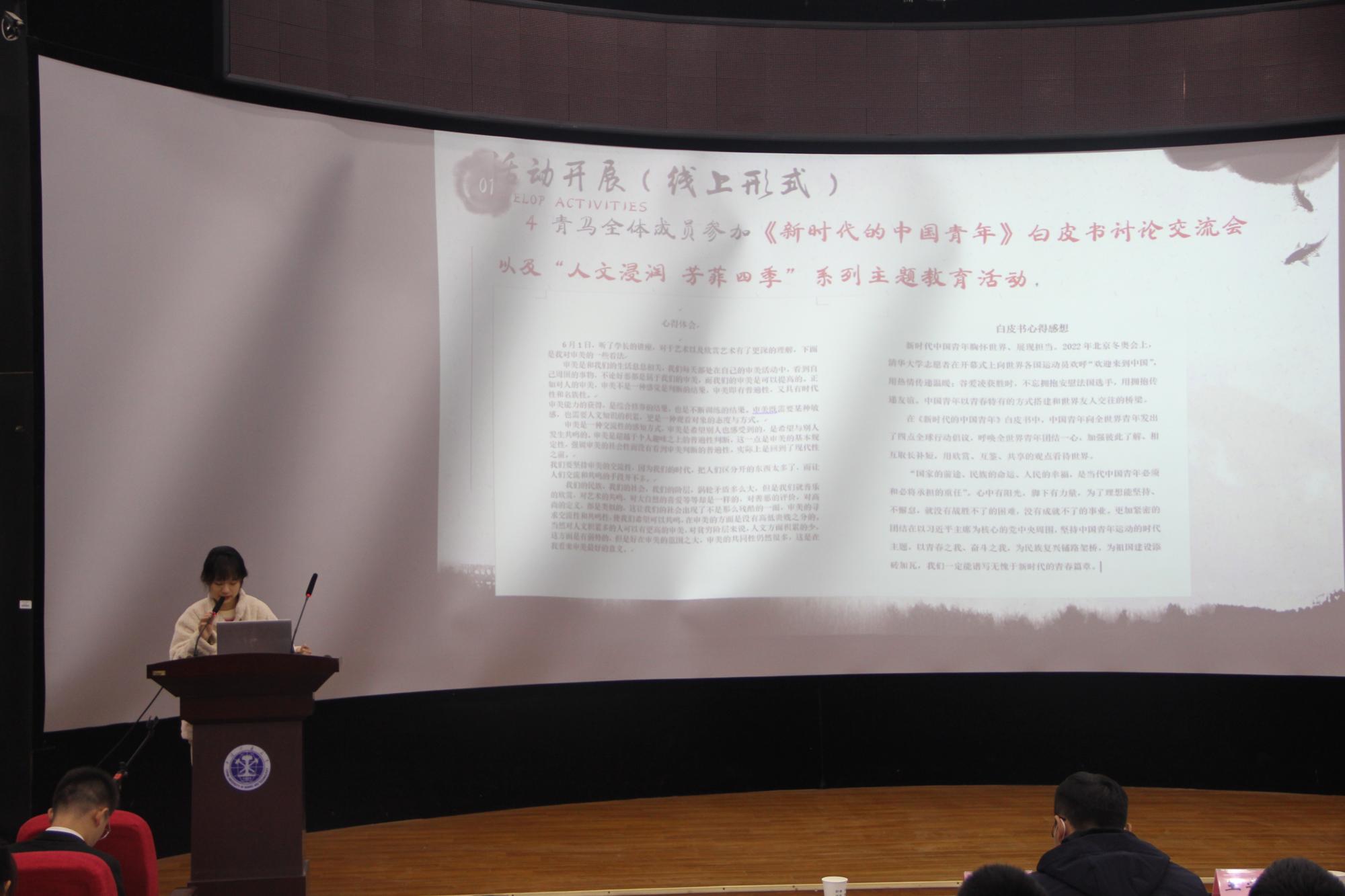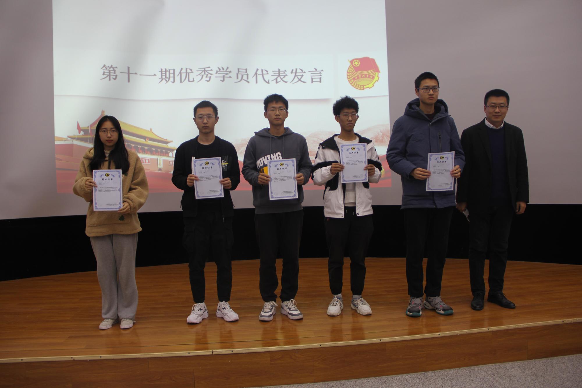 仪式在庄严的国歌声中开始。第十一期学员代表俞庆同学展示了学习成果,一年以来,第十一期青马班组织多次集体学习实践活动,取得了丰硕的成果。优秀学员代表李彤云同学分享了自己在青马班的所学所获,并希望大家都能珍惜学习机会。第十二期学员代表尹苏昱同学发言表示自己将会积极探索,勇于突破,力求学习水平不断进步,工作能力精益求精。随后,韩福顺副书记为第十一期学员代表颁发结业证书,指导教师刘学习老师介绍了新一期青马班的未来规划,并对工作开展做出指导。韩福顺副书记在讲话中希望大家在以后的生活中不问收获、只问耕耘,通过青马工程多发现自己的不足,修好理想信念、能力提升和和争当表率的青春必修课。
