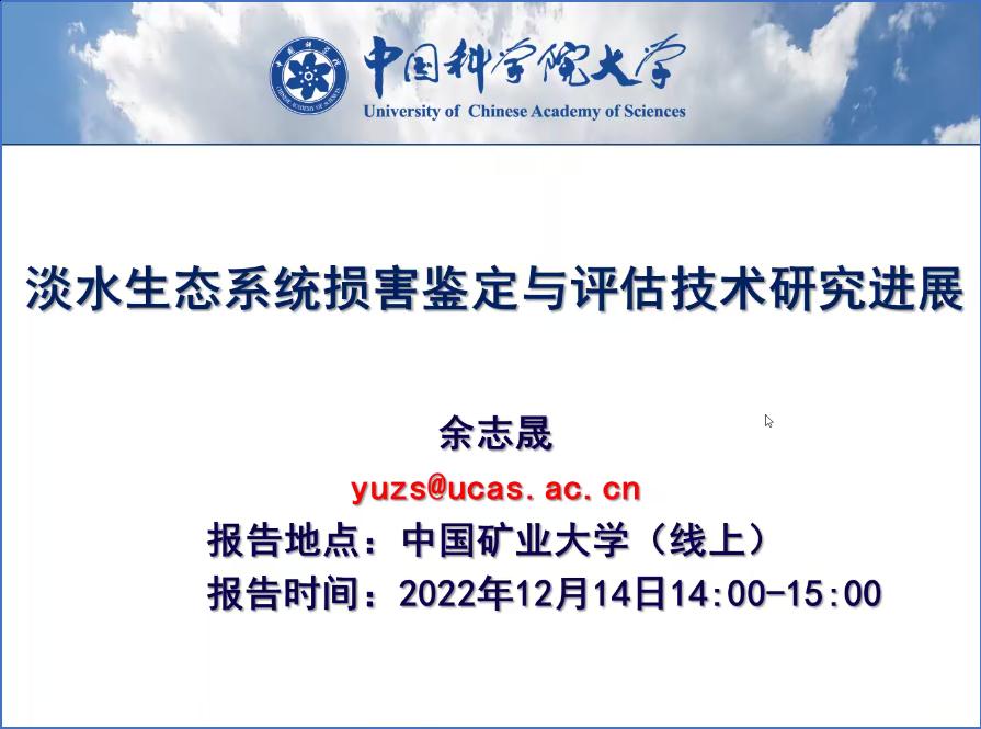 2022年12月14日下午,我院以腾讯会议的方式举办了环境论坛第五期学术报告会,邀请中国科学院大学资源与环境学院余志晟教授作了题为淡水生态系统损害鉴定与评估技术研究的报告。报告会由何士龙教授主持。
