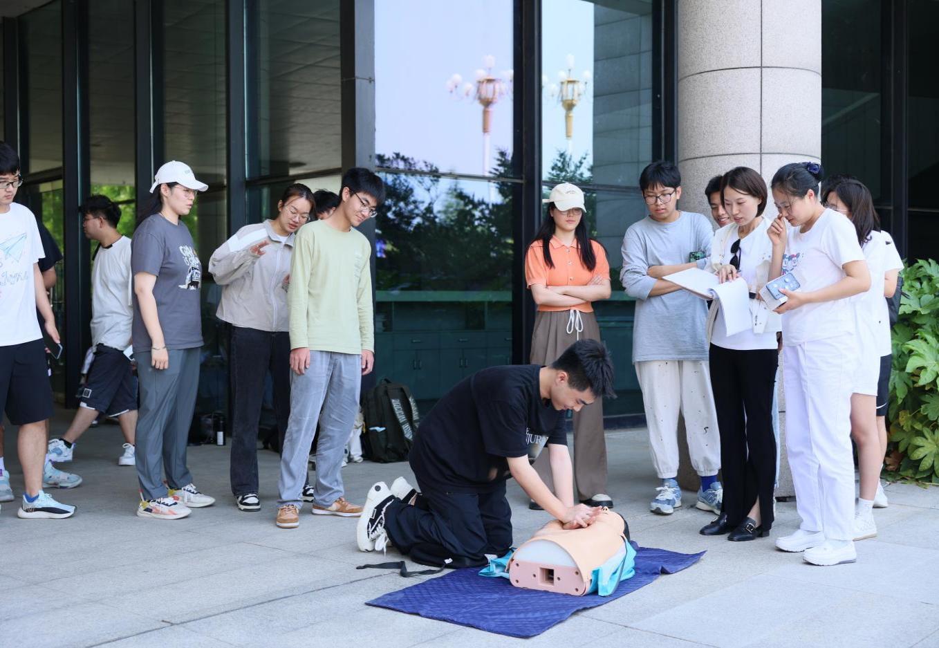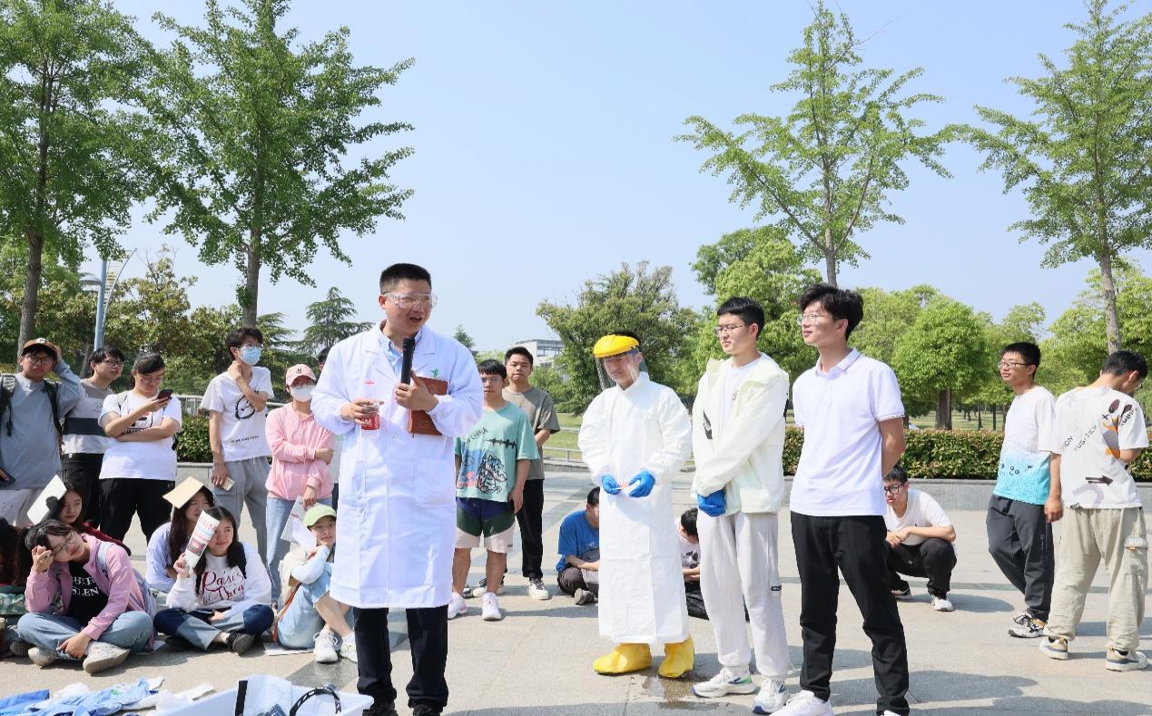 启动会后,环境工程、地理信息科学、测绘工程、环境科学2020级和2021级共计118名本科生在镜湖广场参加了首次劳动教育与实践,首次课程以“实验室安全个人防护与应急处置”为主题。白向玉老师围绕习近平总书记关于安全生产的重要论述、新《安全生产法》的颁布与实施、高校实验室典型安全事故等内容介绍了本课程的设置背景和重要性。江苏君源环保科技有限公司屈俊勋,徐州市中心医院李薇、洪茜以及白向玉老师分别讲解并演示了防护用品穿戴的基本规范、心肺复苏操作流程、消防安全基本知识、灭火器使用以及绳子打结逃生操作方法等,并与学生进行了现场互动。下午13:30,任课教师按照理论考核、灭火器使用、个人防护用品穿戴、心肺复苏、绳子逃生打结五个项目分组逐一对学生进行了实操考核。考核结束后,全体同学共同观看了实验室化学品泄漏应急安全处置演练实操。最后,白向玉老师对本次课程进行总结,并回答了同学们的相关问题。
