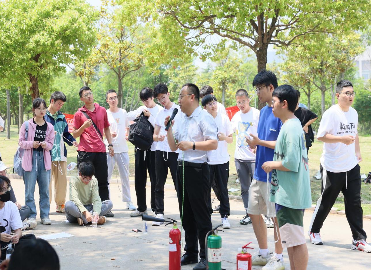 我院白向玉老师讲授灭火器使用和绳子逃生打结方法