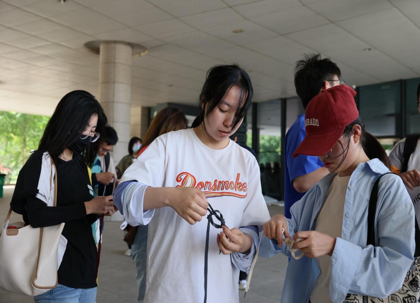 学生进行绳子逃生打结方法考核