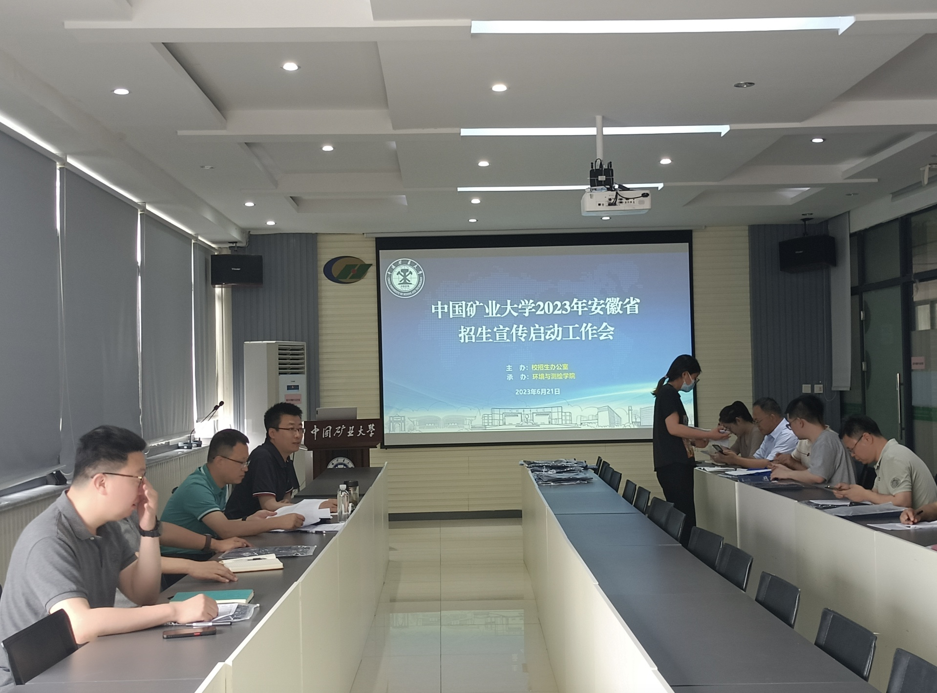 6月21日下午,我院在环A512会议室召开2023年安徽省招生宣传启动工作会。校学生工作处副处长、招生工作办公室主任畅军亮,学院党委书记王守刚,党委副书记韩福顺,副院长周来,副院长郭东出席会议,参与今年招生宣传的10个组30余名教职工参加会议。会议由院党委副书记韩福顺主持。