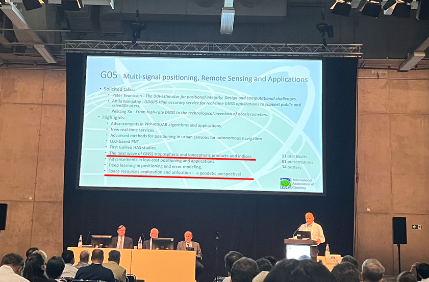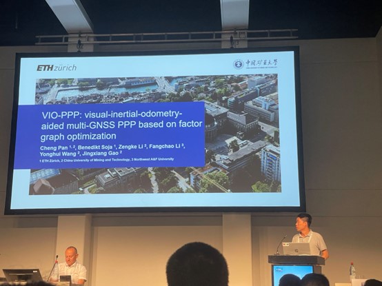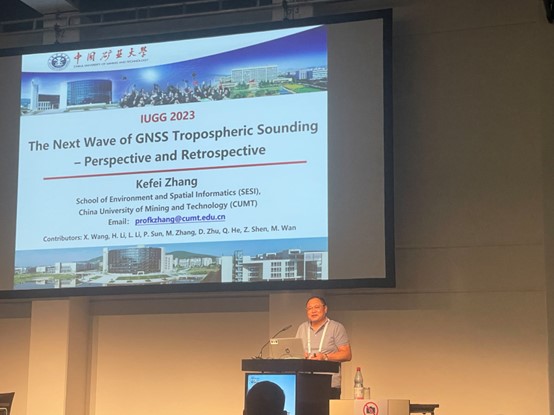 在本届IUGG大会上,我院张克非教授在国际大地测量协会(IAG)分会场做了题为《Space Resources Exploration and Utilization – A Geodetic Perspective》和《The Next Wave of GNSS Tropospheric Sounding – Perspective and Retrospective》的报告,分别入选了IAG闭幕会总结中的亮点报告。这两份报告凸显了我院在空间资源勘探利用和GNSS对流层探测等领域的前沿研究成果,引发了与会代表的高度关注和广泛讨论。此外,张秋昭教授、尹智博士后、李龙江博士后和潘诚博士分别在IAG分会场上做了题为《GNSS dual-frequency carrier phase multipath MHM model and its application in real deformation monitoring scenario》、《The geometrical features of a gravitational plumb line using the potential flow theory – a revisit》、《A new model for forecasting rainfall events based on real-time GNSS-PWV》、《VIO-PPP: visual-inertial-odometry-aided multi-GNSS PPP navigation and positioning system based on factor graph optimization》的口头报告,并与相关学者进行了广泛讨论。李龙江博士后还得到了IUGG大会的资助。