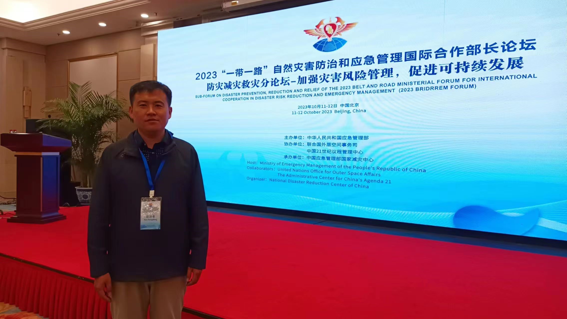 2023年10月11日-12日,2023“一带一路”自然灾害防治和应急管理国际合作部长论坛分论坛防灾减灾救灾在中国北京召开,主题为“加强灾害风险管理,促进可持续发展”。联合国以及亚洲、非洲和拉丁美洲等多个国家灾害管理机构发表演讲,近200名与会者参会。我院自然资源部国土环境与灾害监测重点实验室副主任范洪冬教授应邀参会,研讨交流防灾减灾救灾方面的相关技术与理念。