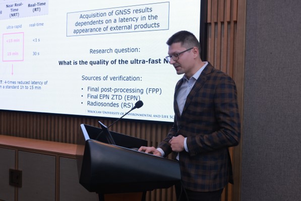 主旨报告环节,日本北海道大学Kosuke Heki教授作了题为“Tropospheric water vapor, delay gradients, and crustal subsidence associated with a typhoon landfall from a dense GNSS array in Japan”的报告,利用日本密集GNSS台网,展示了与台风登陆有关的对流层水汽、延迟梯度和地壳沉降;波兰弗罗茨瓦夫环境与生命科学大学Witold Rohm教授作了题为“Destination earth, towards digital twin earth – contribution from UPWr and CUMT”的报告;此外,中国矿业大学张克非教授、中国气象局探测中心曹云昌高级研究员、中国科学院空天信息创新研究院李子申研究员、中国气象局武汉暴雨研究所徐桂荣研究员、中山大学李磊教授、粤港澳大湾区气象监测预警预报中心谢元富教授等专家学者围绕GNSS水汽反演、数值同化、数值天气预报、GNSS电离层建模、GNSS反射信号及遥感等内容先后作主旨报告16个,展示了国内外GNSS大气遥感与数值同化领域理论与技术的最新研究进展。