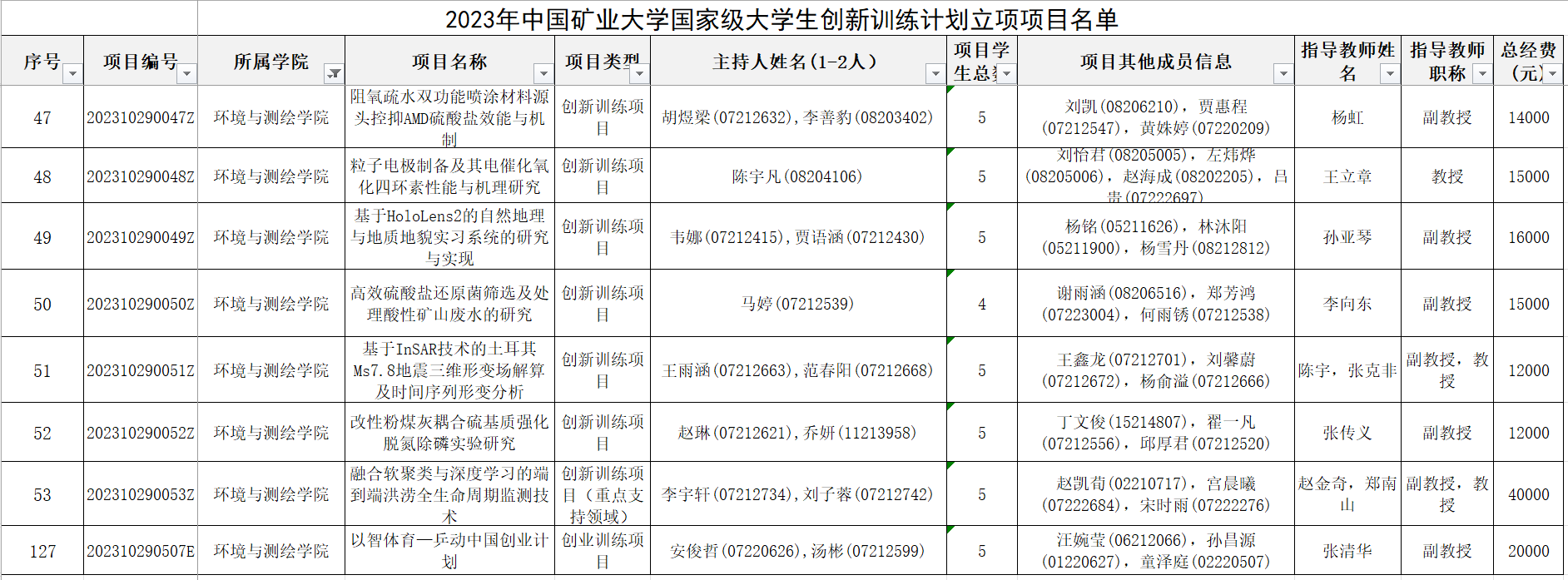 根据《教育部高等教育司关于公布 2023 年国家级大学生创新创业训练计划项目和重点支持领域项目名单的通知》(教高司函〔2023〕8 号),经学院遴选、学校评审、省教育厅审核、教育部高等教育司公布确认,我院6项创新训练项目、1项创新训练项目(重点支持领域)、1项创业训练项目获得立项,详见文件: