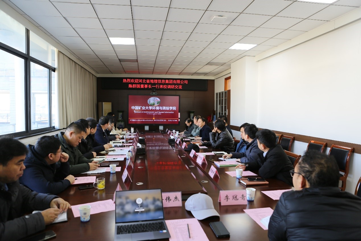 1月15日上午,河北省地理信息集团有限公司党委书记、董事长陈群国带队来院调研交流。学院在我院A506召开座谈交流会,党委书记王守刚出席并主持座谈会。
