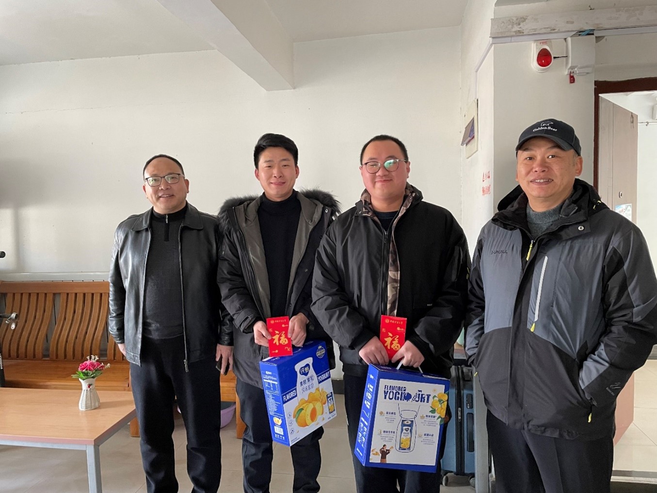 走访期间,老师们亲切询问了我院留校过年学生寒假期间的学习生活安排情况,提醒做好宿舍和实验室的安全防范工作,送上春节祝福,并代表学校学院向每位留校学生派发了慰问礼物,留校学生对学校学院领导老师的关心关爱表示衷心感谢。随后,杨政军老师和留校学生们在学校一食堂参加集体慰问活动,并共进团圆午餐。