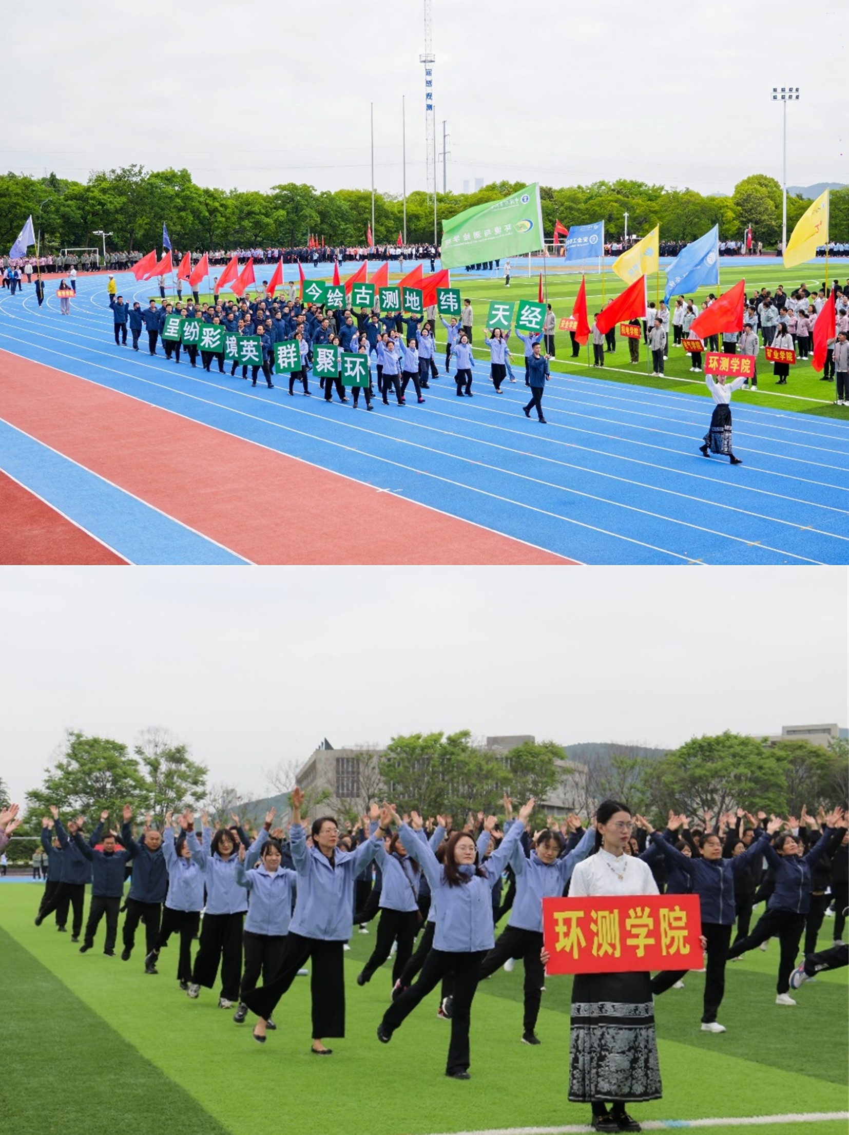 开幕式上,我院教职工代表方阵精神抖擞、步伐整齐、口号嘹亮,充分展现了环测人昂扬向上、团结奋进的精神面貌。广播操表演中,学院教职工跟随节拍律动,动作整齐划一,以最佳状态展现了学院教职工的活力风采。比赛项目中,我院上场运动员奋勇拼搏、突破极限,先后取得了男子甲组400米第三名、男子甲组1500米第八名、男子乙组标枪第二名、男子乙组铅球第八名的好成绩。