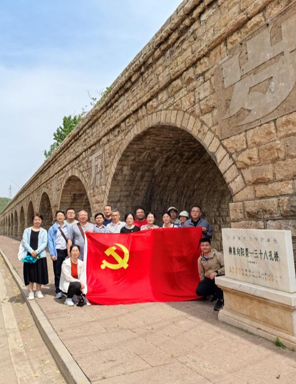 老师们首先来到三十八孔桥,这是全长65公里的向阳渠线路中保存最好的两用渡槽。向阳渠是1970年代为应对当地缺水少粮而建,走在渠上,大家仍被当年广大党员群众战天斗地、不计个人得失、开人工天河、引微山湖水的奋斗精神鼓舞。